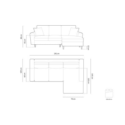 Iz rebrastega žameta, raztegljiva/s prostorom za shranjevanje, desni kot/z ležalnikom, zelena, primerna za hišne ljubljenčke, trisedežna, širina 241 cm