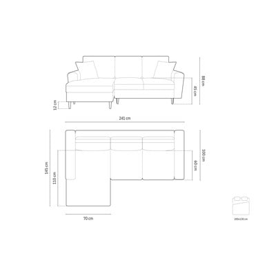 Iz rebrastega žameta, raztegljiva/s prostorom za shranjevanje, levi kot/z ležalnikom, zelena, primerna za hišne ljubljenčke, trisedežna, širina 241 cm