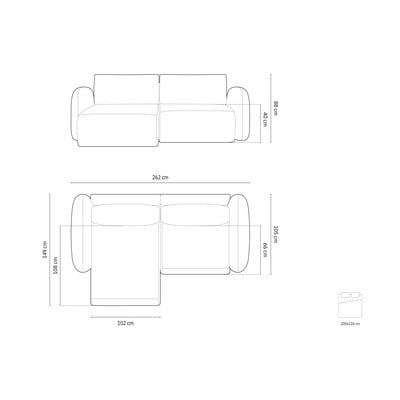 Iz šenilje, raztegljiva/s prostorom za shranjevanje, desni kot/levi kot/s kotom po izbiri/z ležalnikom, zelena, trisedežna, širina 262 cm