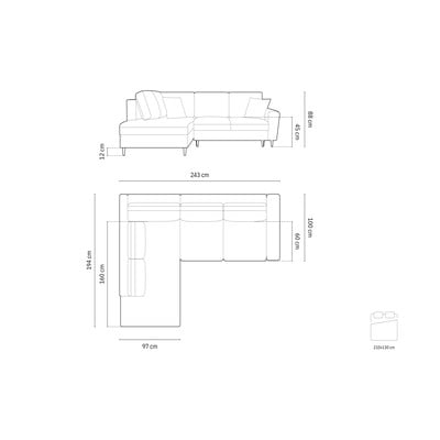 Zelena žametna raztegljiva kotna sedežna garnitura s prostorom za shranjevanje (desni kot/z ležalnikom) Kyoto – Cosmopolitan Design