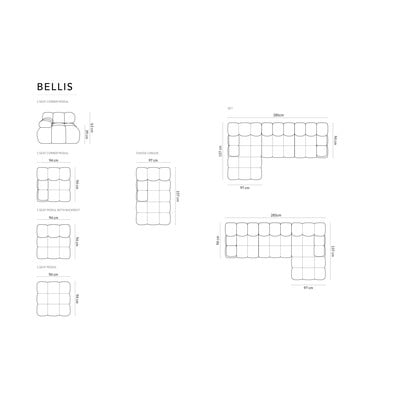 Črna žametna sedežna garnitura 285 cm Bellis – Micadoni Home