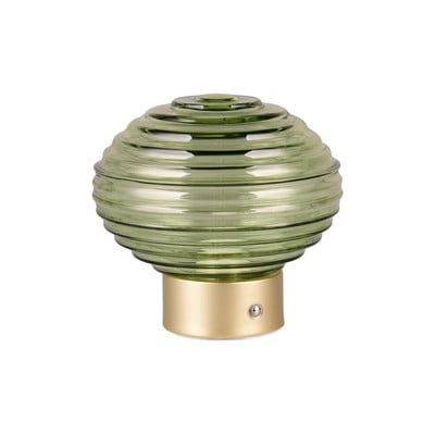 LED, zatemnitvena, s steklenim senčilom, kovinska/steklena, na USB, zelena/v zlati barvi, višina 14,5 cm