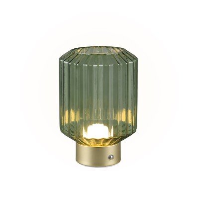 LED, zatemnitvena, s steklenim senčilom, kovinska/steklena, na USB, zelena/v zlati barvi, višina 19,5 cm